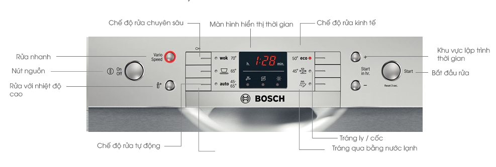 Máy rửa bát Bosch được trang bị rất nhiều chức năng giúp bạn không những rửa nhanh mà còn rất tiết kiệm: