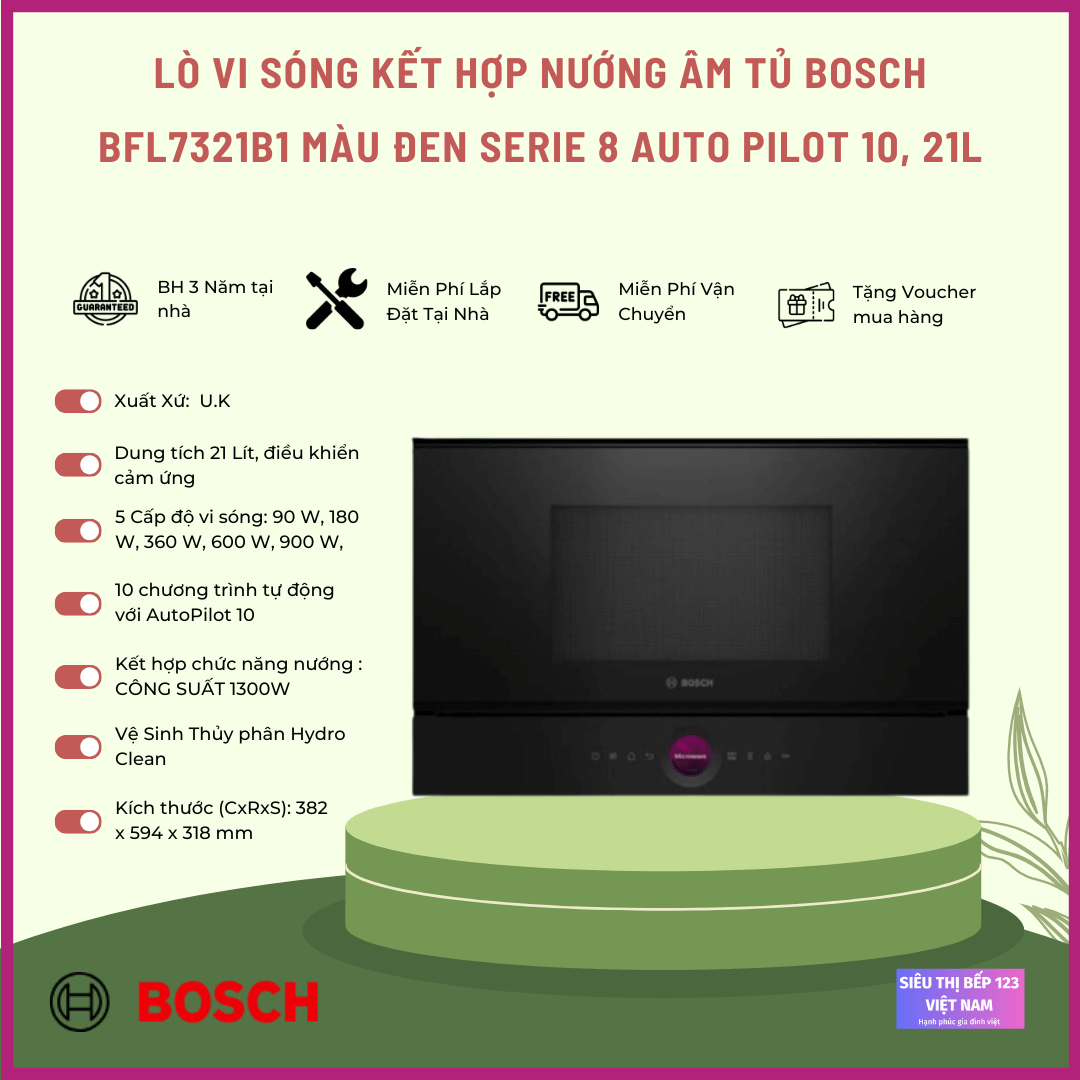 Lò Vi Sóng Âm Tủ Bosch BEL7321B1 là một sự lựa chọn xuất sắc cho những người yêu thích nấu nướng và mong muốn sở hữu một sản phẩm hiện đại và đa chức năng trong gian bếp của mình.